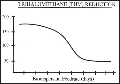 BIO-PURGE TOTAL TRIHALOMETHANE (THM) REDUCTION Trihalomethanes are compounds formed from organic compounds in the water complexing with halogens such as; chlorine, bromine or fluorine. Federal regulations are placing increasingly stringent controls for THM levels on a continuing basis for all water supplies, addressing once again the safety and health issues of our country’s drinking water systems. Many water supplies are using alternative disinfectants to replace chlorine, in an effort to reduce THM levels. The foremost of these alternatives is the increased use of chloramines. The concern with chloramines usage is that the corresponding nitrogen content is also increased in the water supply, which is a primary factor for an increase in the biological growth throughout the system, thereby potentially adding to the biofilm problem. Research and development work regarding THM production, has shown beneficial results through the use of biodispersants, as highlighted below;